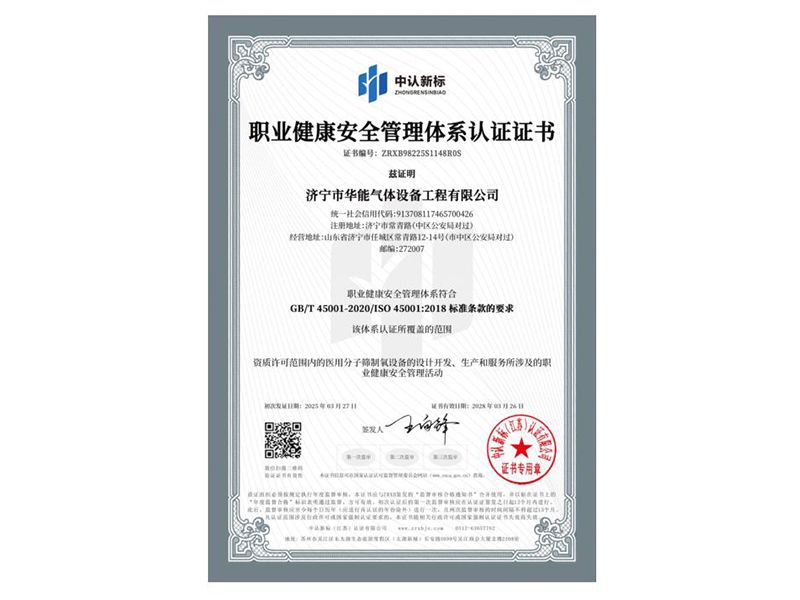 職業(yè)健康安全管理體系認(rèn)證證書(shū)